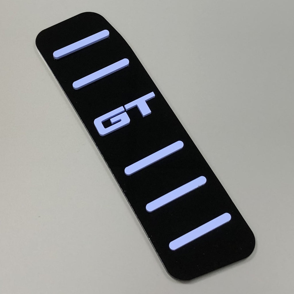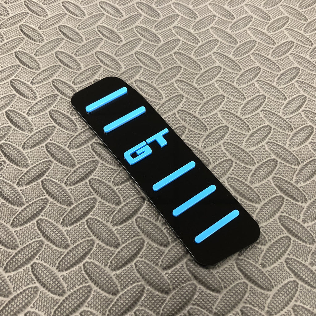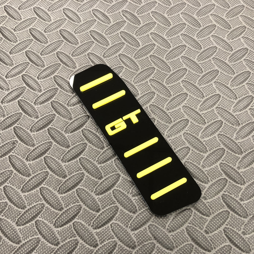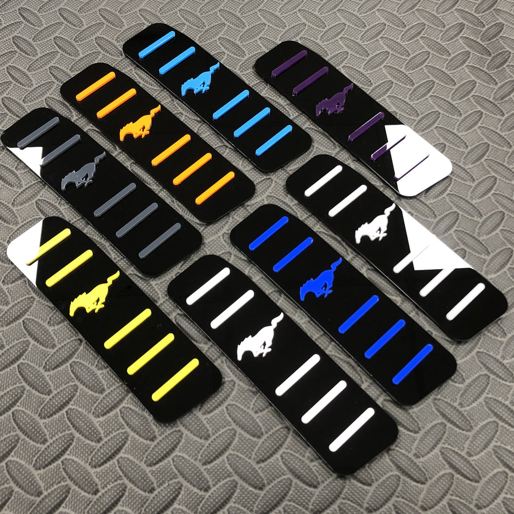 Hergestellt aus hochwertigem, 3 mm dickem, glänzend schwarzem Acryl mit farbigen Details nach Wahl und „GT“- oder Mustang-Logo.