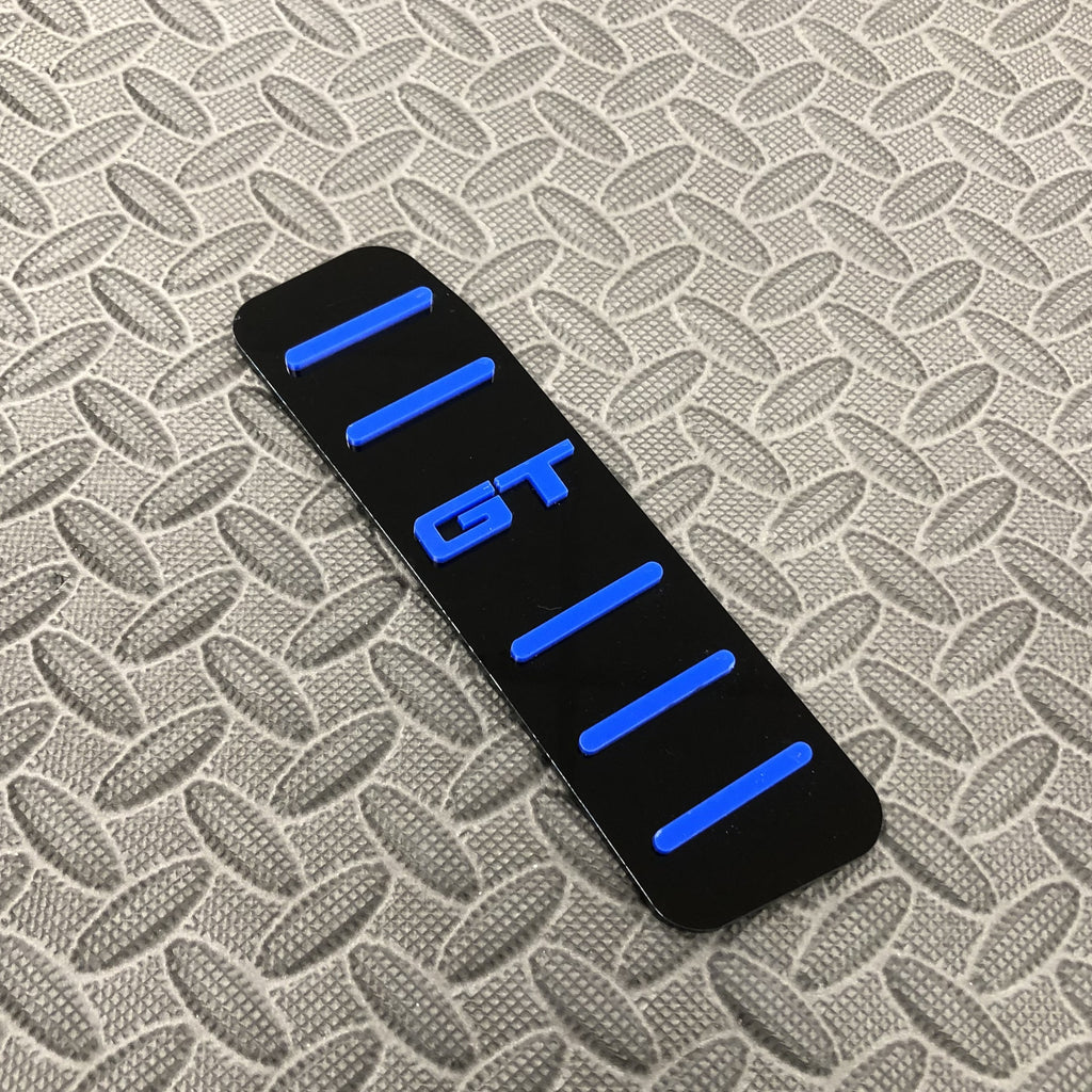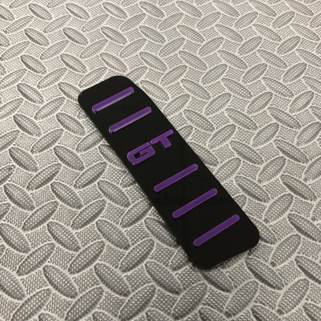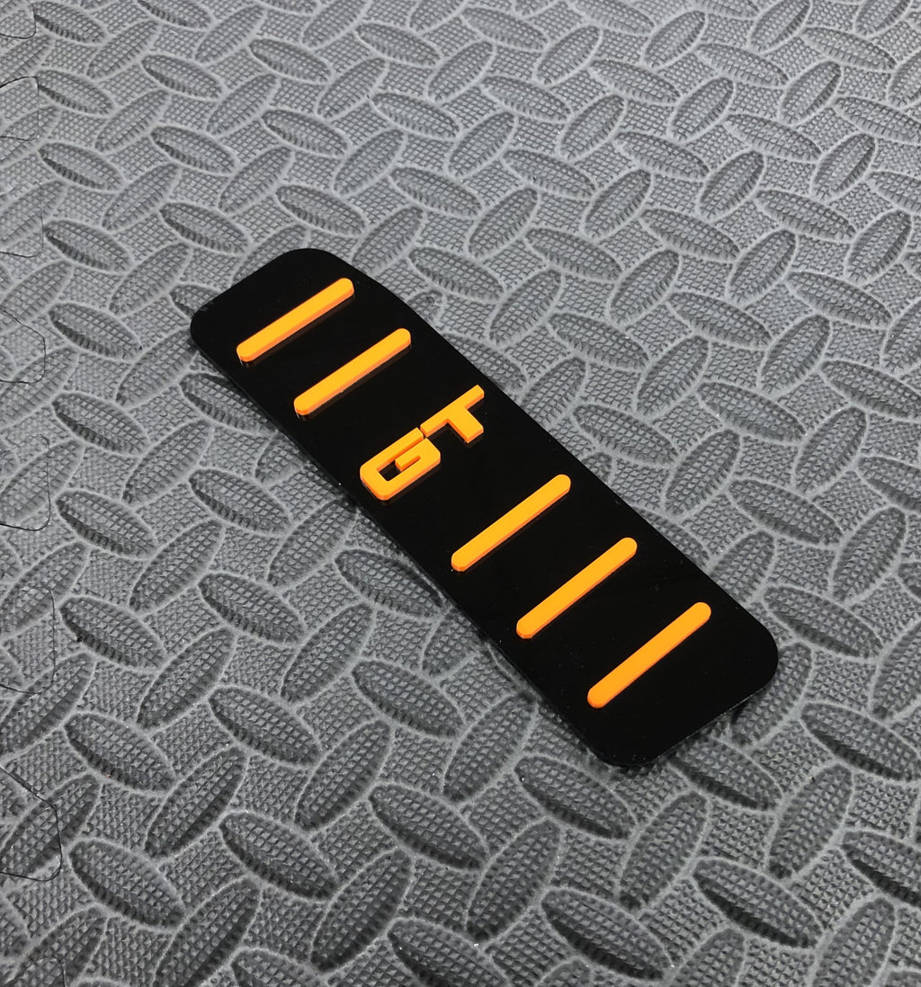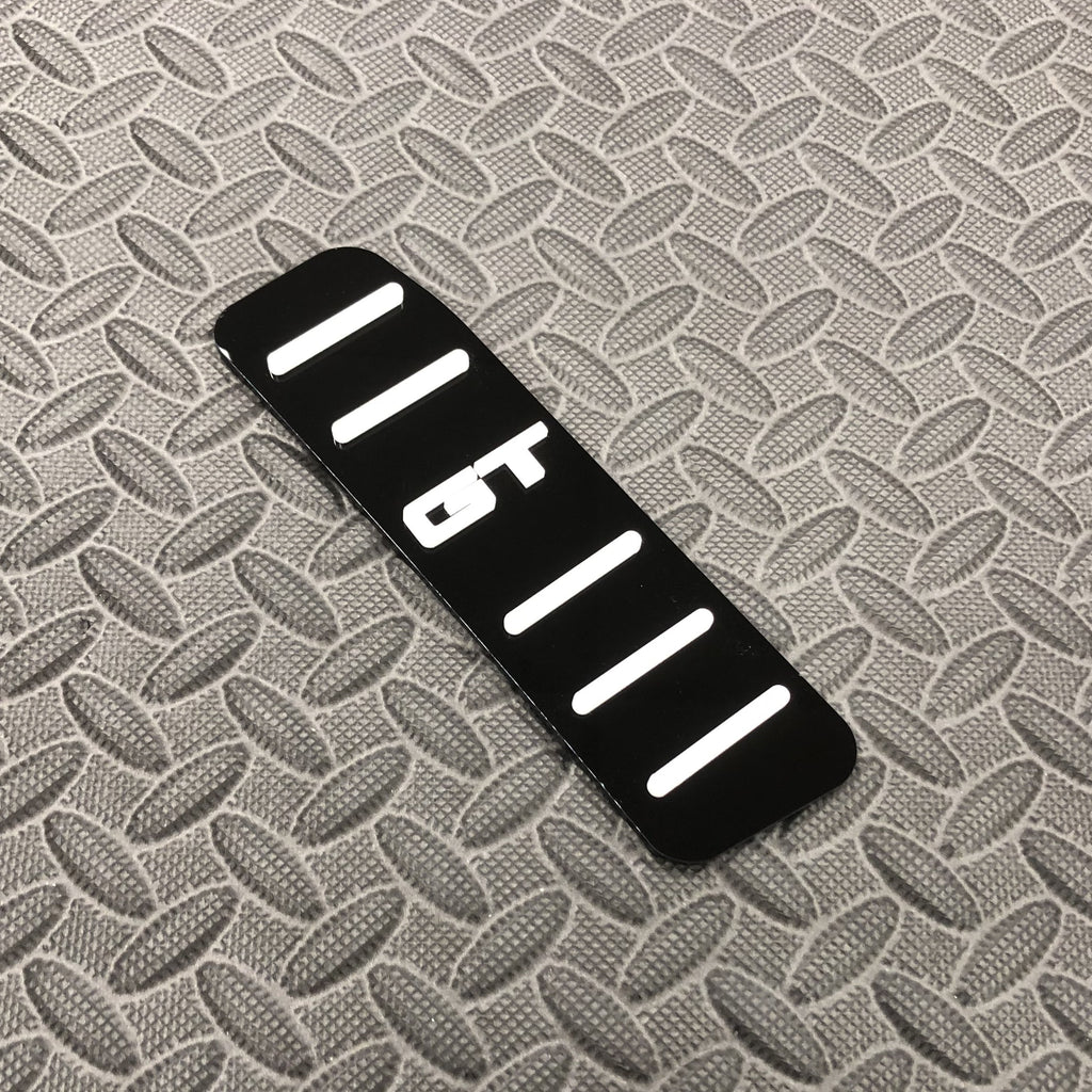 Hergestellt aus hochwertigem, 3 mm dickem, glänzend schwarzem Acryl mit farbigen Details nach Wahl und „GT“- oder Mustang-Logo.