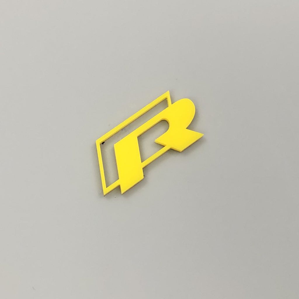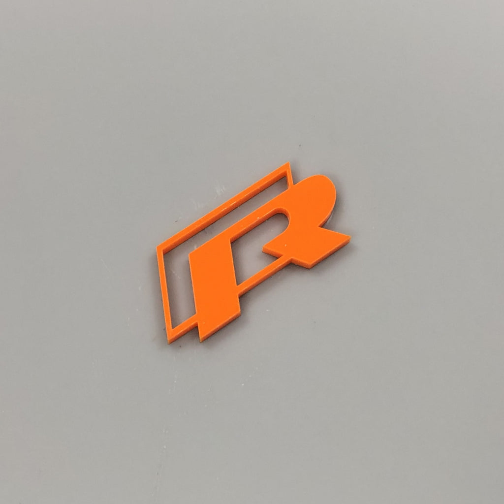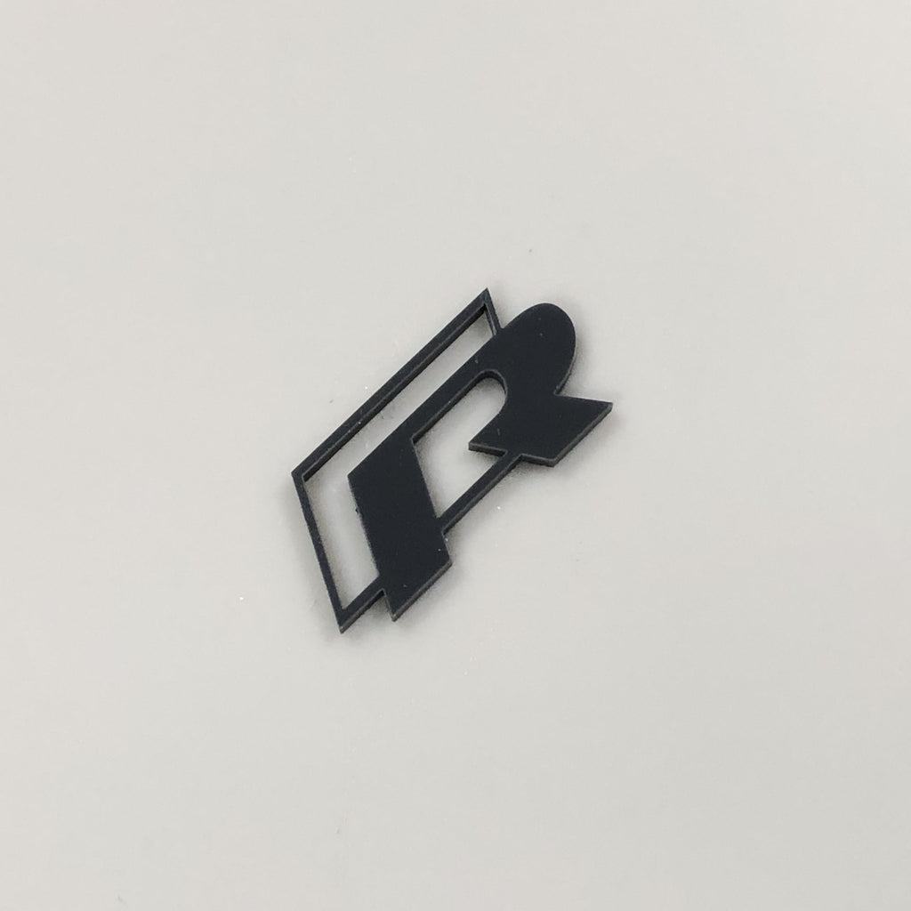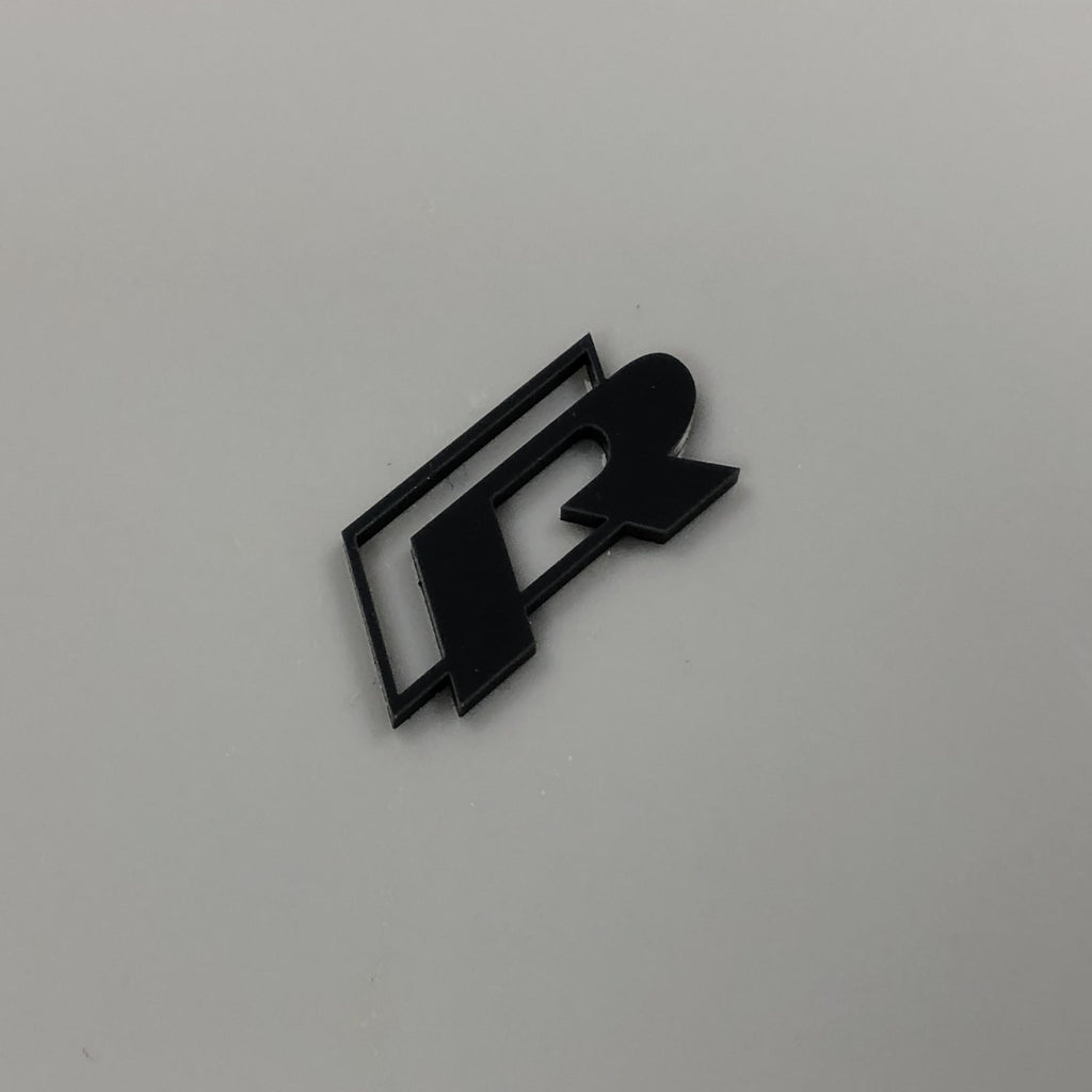 Kleines R-Logo-Abzeichen, präzise lasergeschnitten aus hochwertigem 3 mm starkem Acryl. Mit selbstklebender Rückseite – einfach abziehen und aufkleben.
