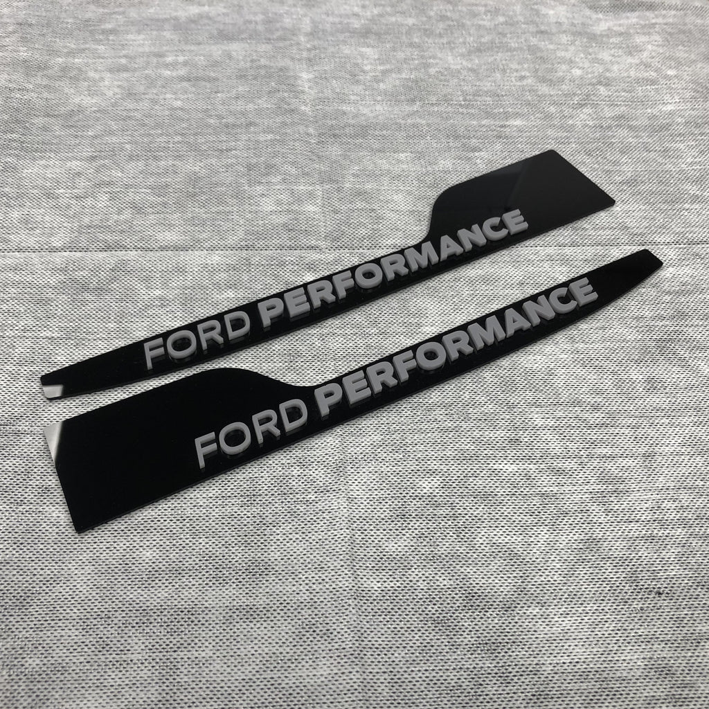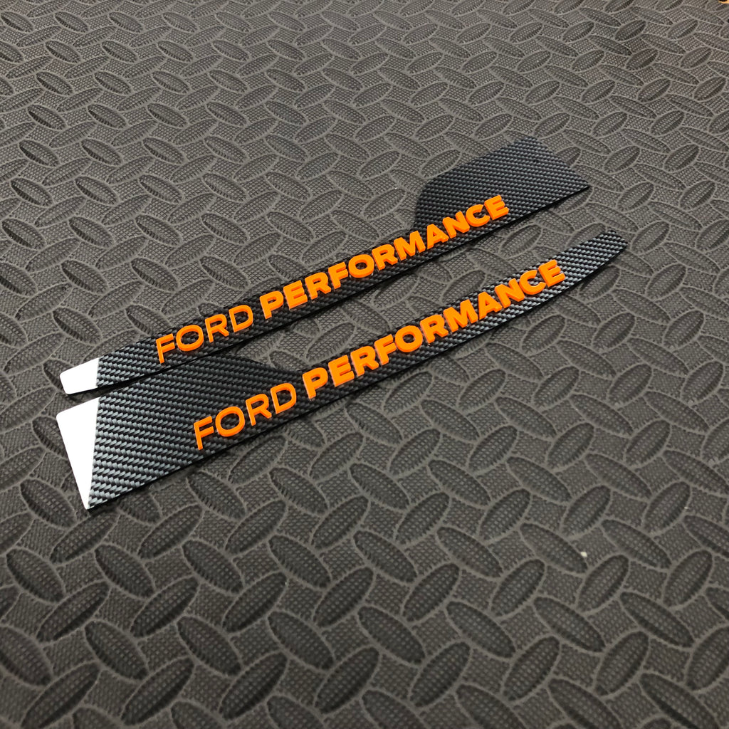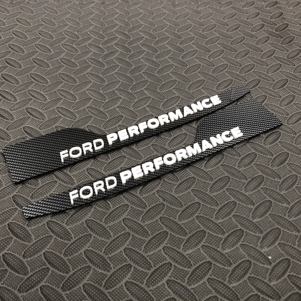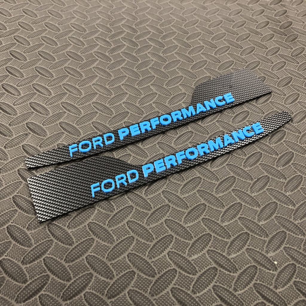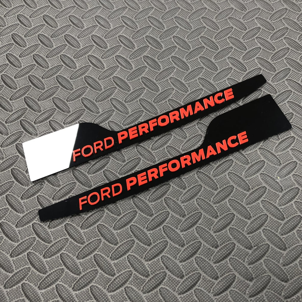 Usinées CNC à partir de plastique ABS noir brillant de haute qualité ou à effet fibre de carbone de luxe, ces plaques peuvent être fournies avec ou sans lettrage acrylique 3D pré-appliqué « Ford Performance » en blanc / rouge (d'autres couleurs disponibles sur commande personnalisée).