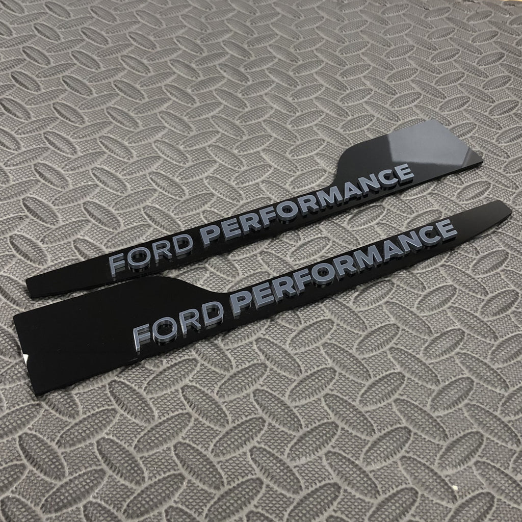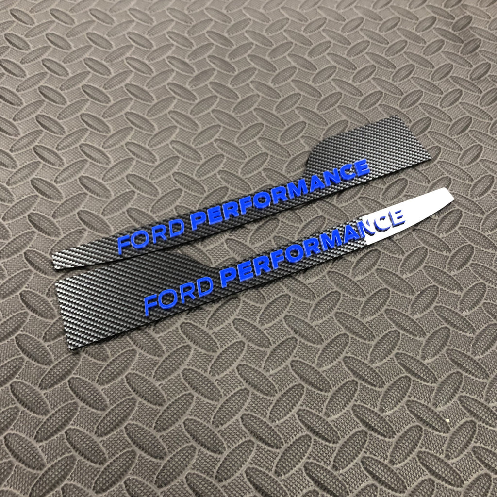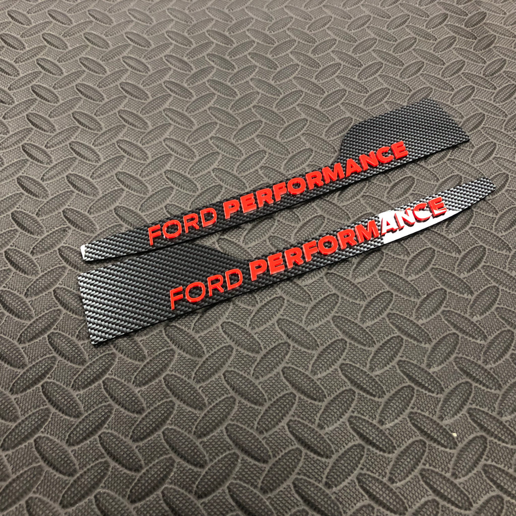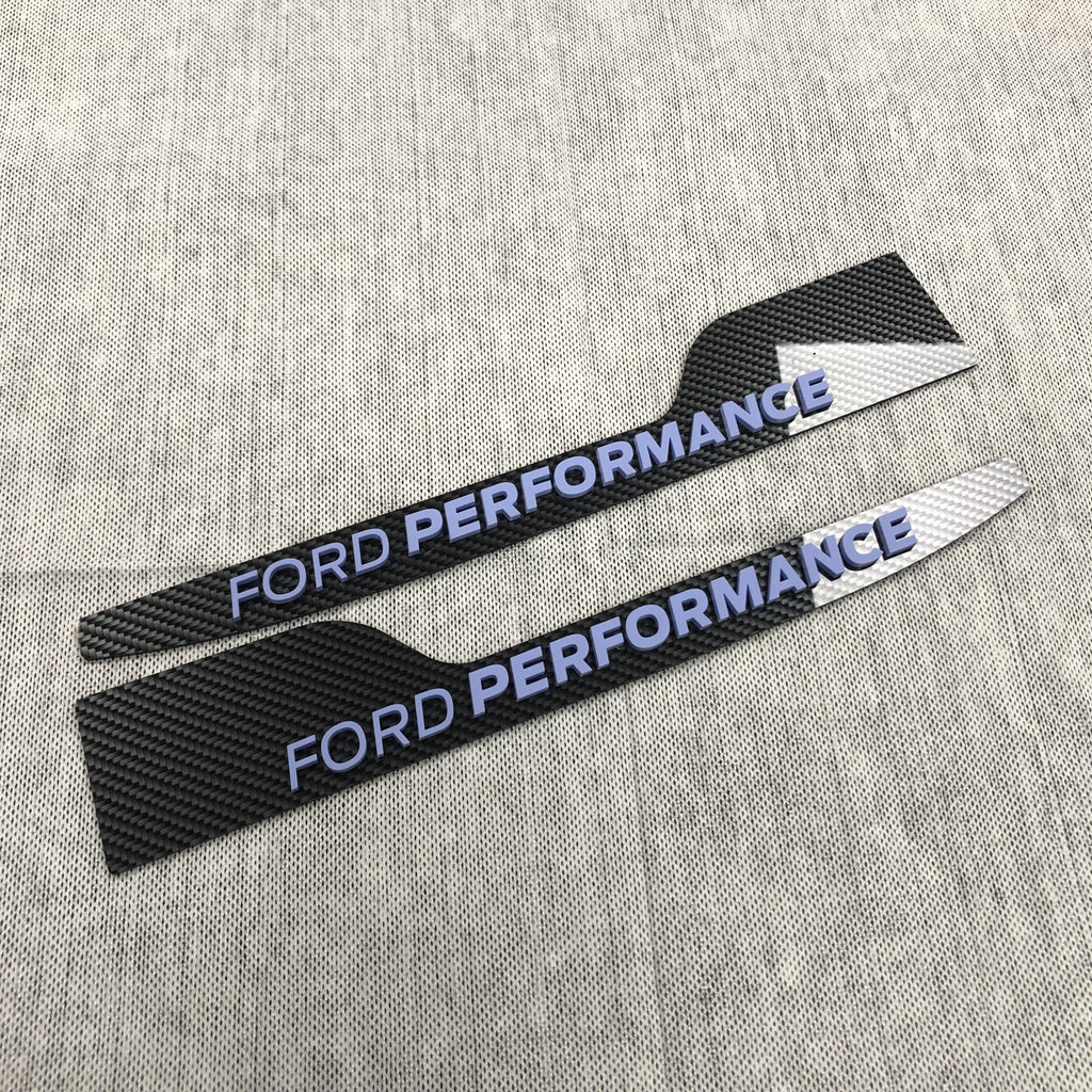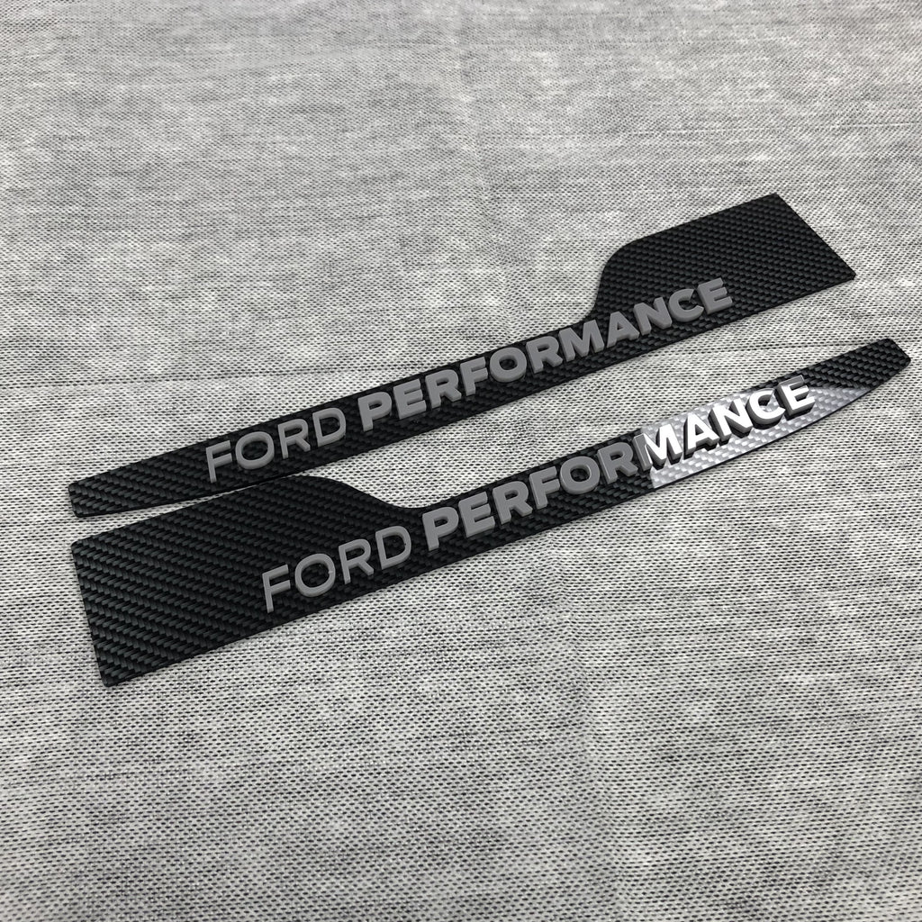 Usinées CNC à partir de plastique ABS noir brillant de haute qualité ou à effet fibre de carbone de luxe, ces plaques peuvent être fournies avec ou sans lettrage acrylique 3D pré-appliqué « Ford Performance » en blanc / rouge (d'autres couleurs disponibles sur commande personnalisée).