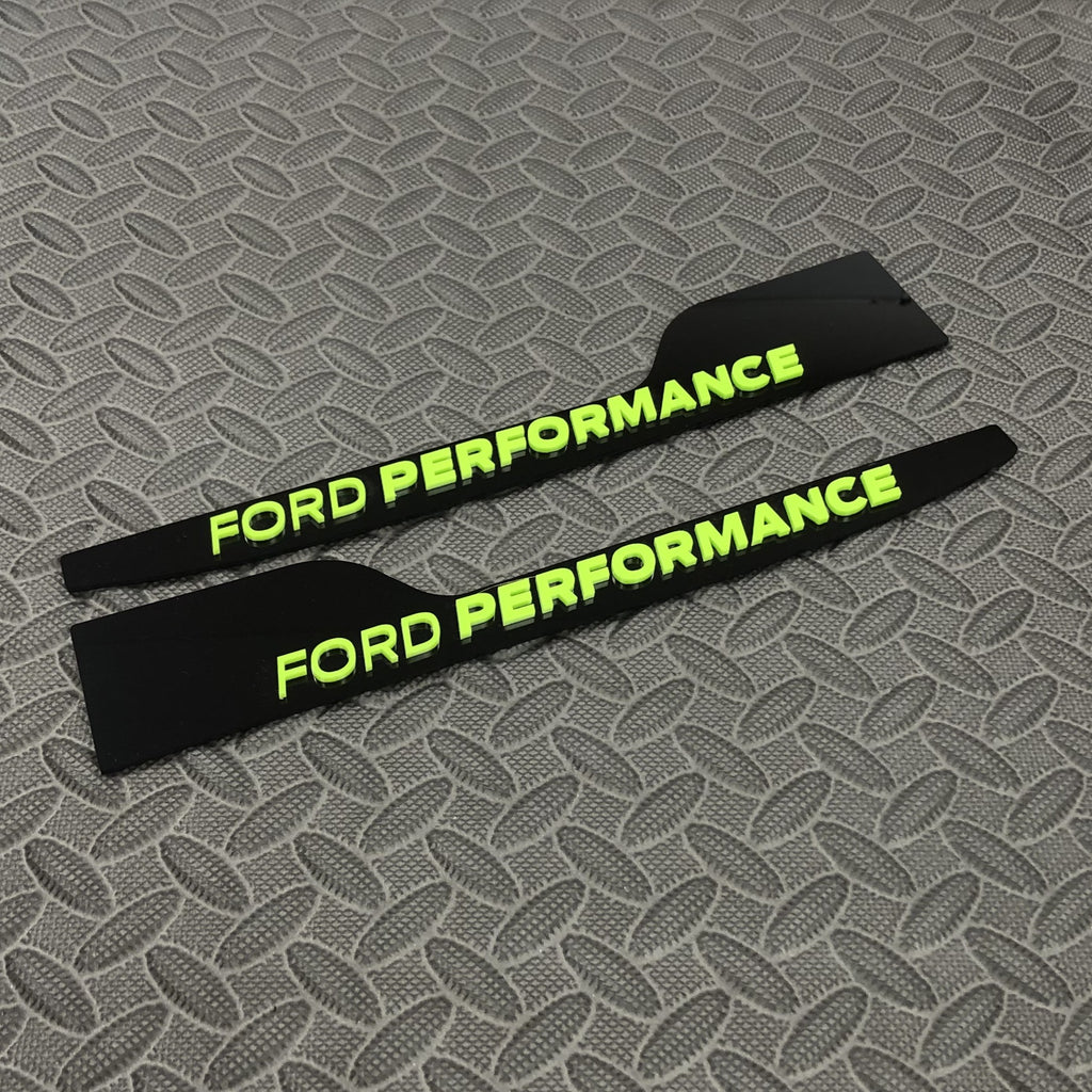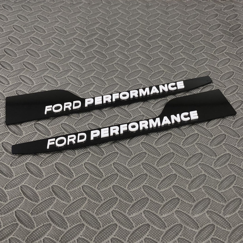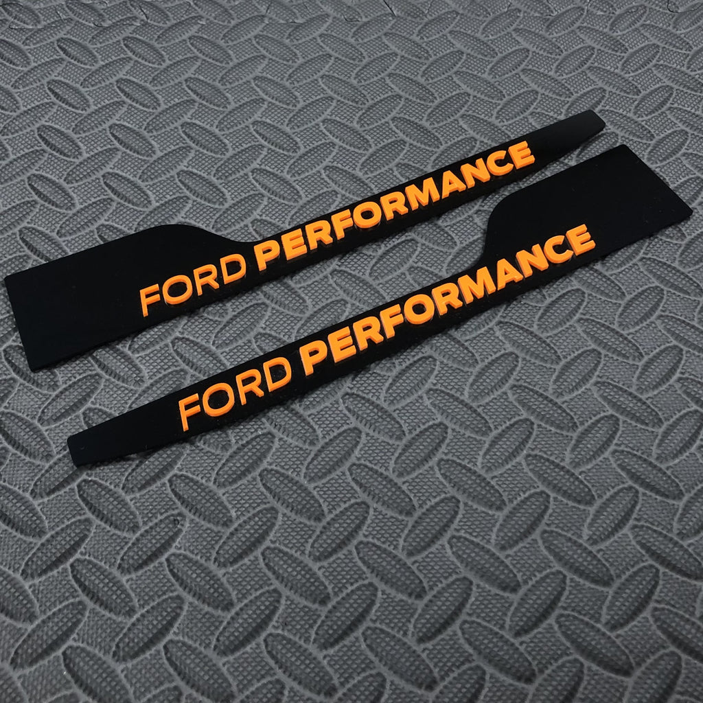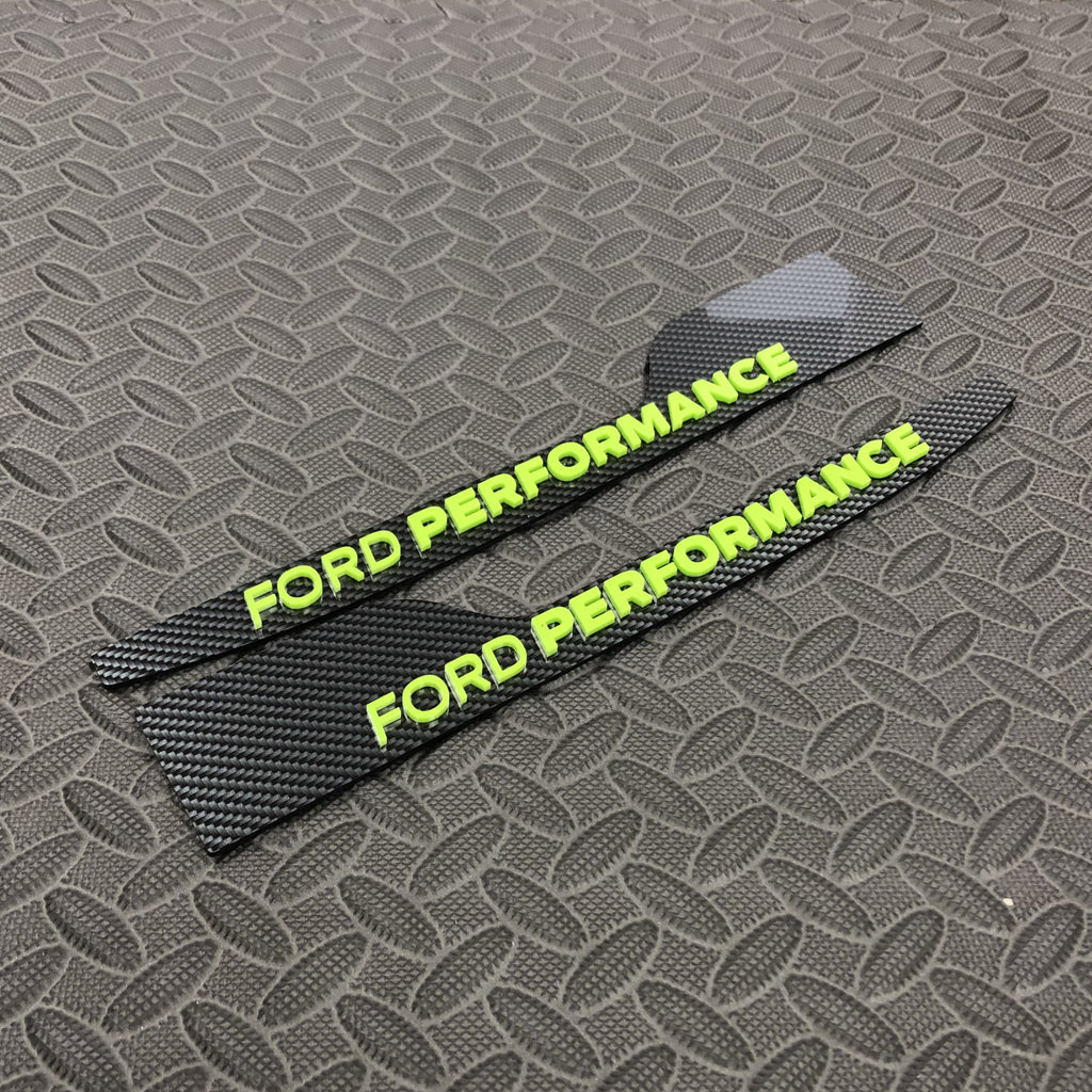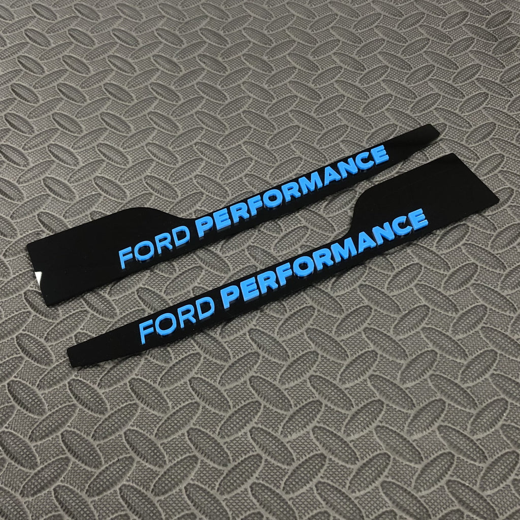 Usinées CNC à partir de plastique ABS noir brillant de haute qualité ou à effet fibre de carbone de luxe, ces plaques peuvent être fournies avec ou sans lettrage acrylique 3D pré-appliqué « Ford Performance » en blanc / rouge (d'autres couleurs disponibles sur commande personnalisée).