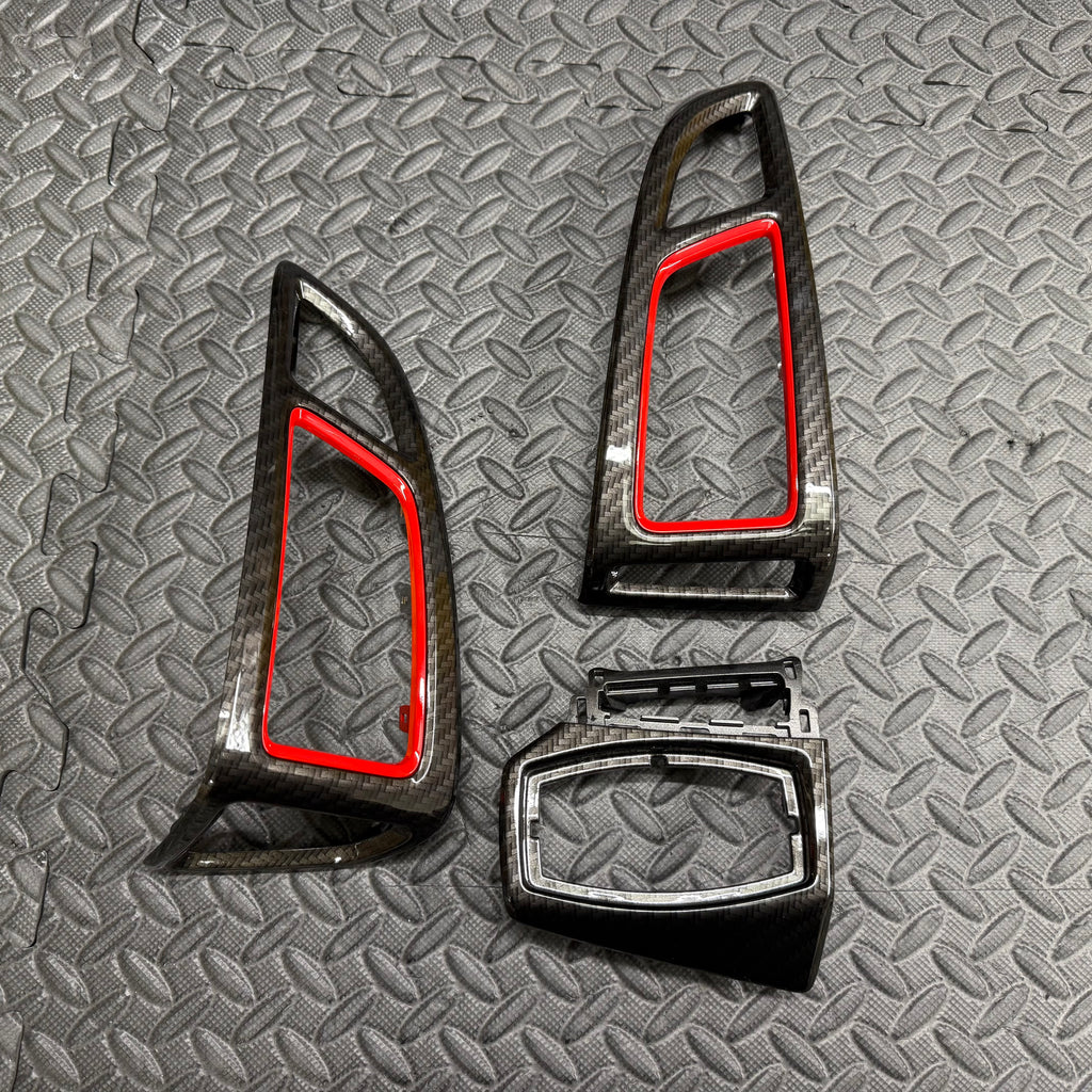 These parts have been stripped down and the vent surrounds either painted or hydrodipped before being reassembled. Accent colour (the chrome rings on original part) options also available.