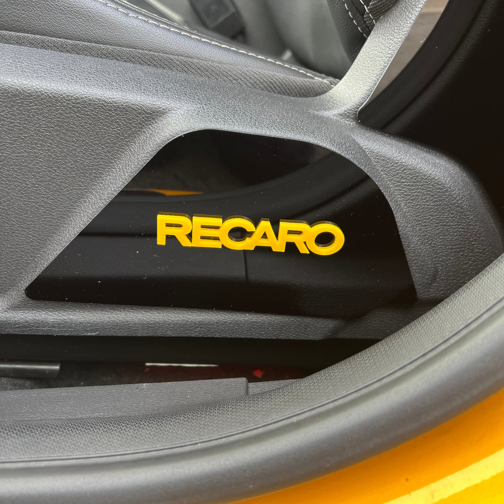 CNC machined from high quality gloss black or deluxe carbon fibre effect ABS plastic, these plates can be provided with "Recaro" logo in a range of colours. Other colours/designs available as a custom order. Please contact us for details.