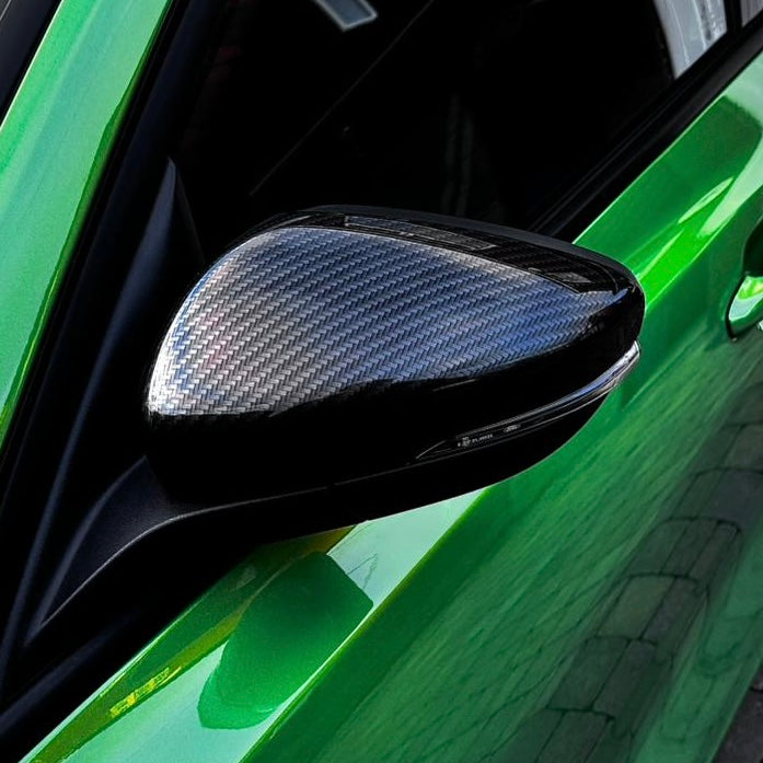 A pair of replacement mirror caps professionally painted in Gloss Black or finished in our Carbon Fibre hydrodip.
