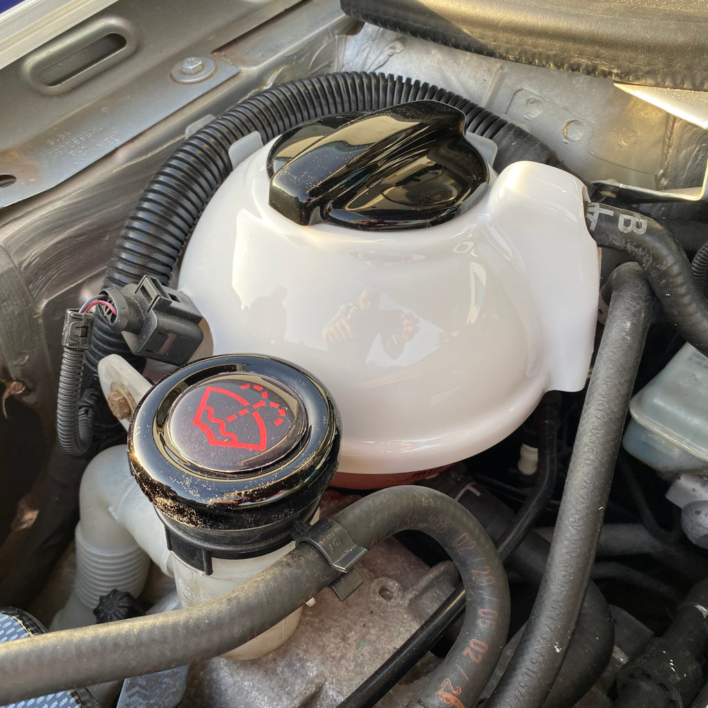 Tidy up your engine bay with a Proform engine bay coolant tank cover.