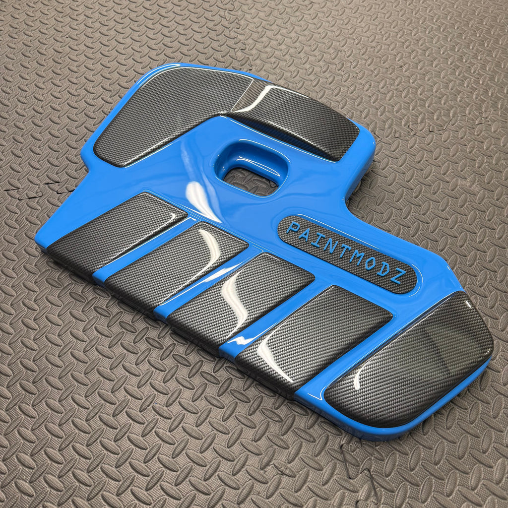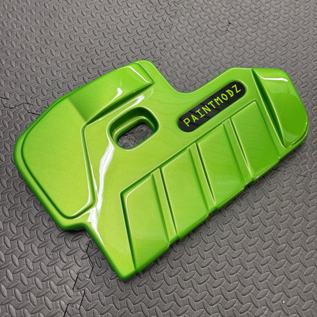 Supplied with gloss black badge plate and Paintmodz logo in colour to closely match engine cover.