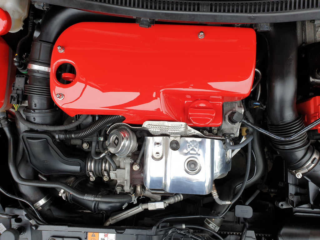 An engine cover for Ford’s Mk3.5 Focus1.0 Ecoboost engine which has been carefully thought through to mount in place and hide the unsightly engine for the purpose of showing off your engine bay.