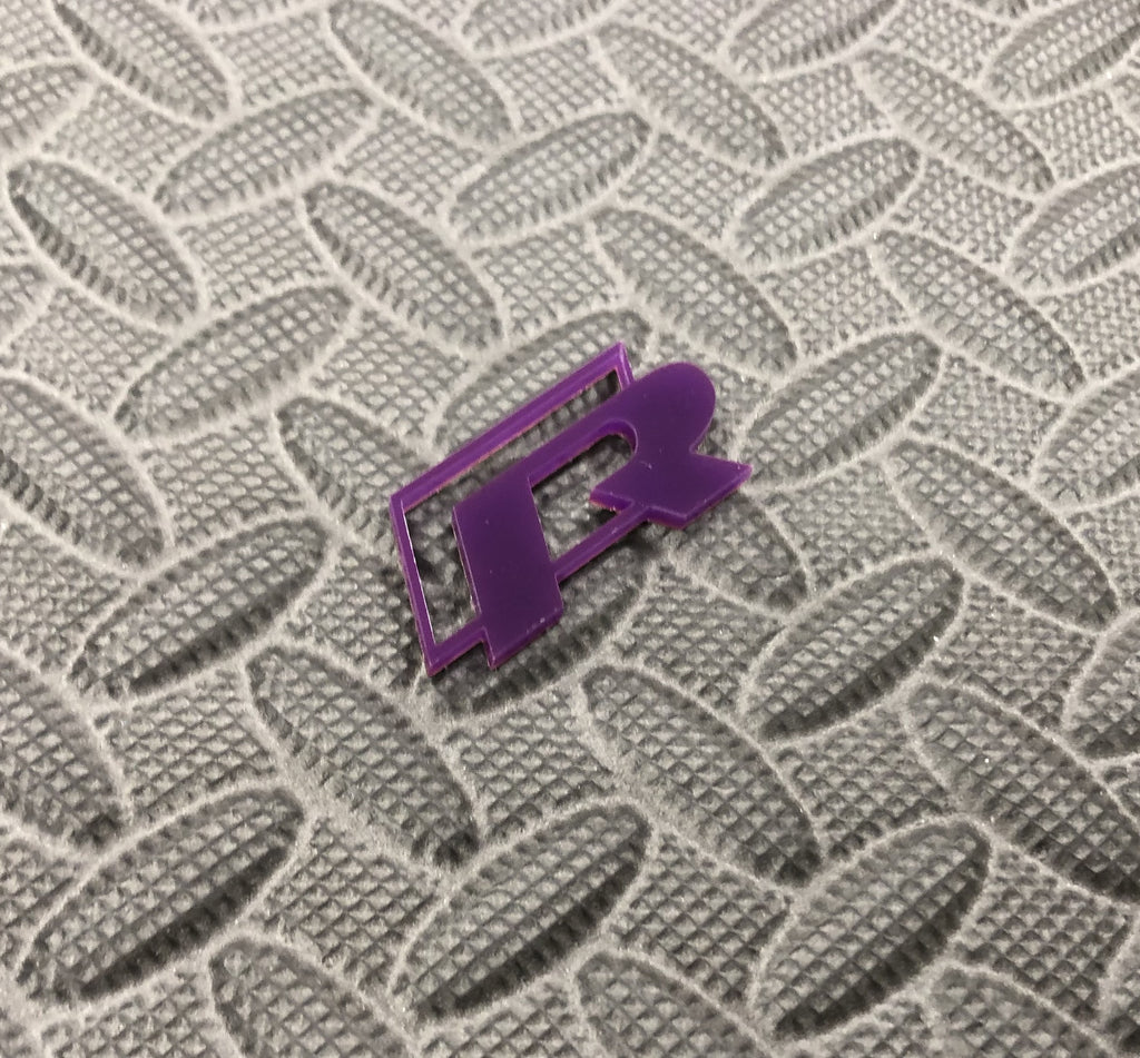 Small R logo badge precision laser cut from from high quality 3mm acrylic. Supplied with adhesive backing applied - just simply peel and stick.